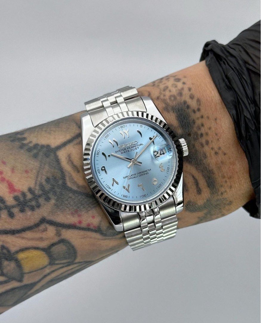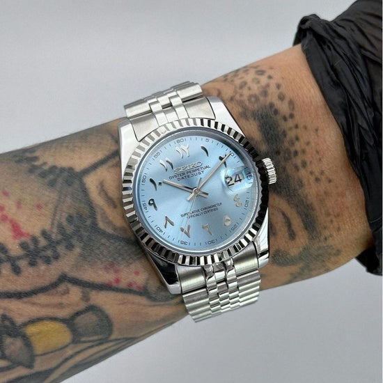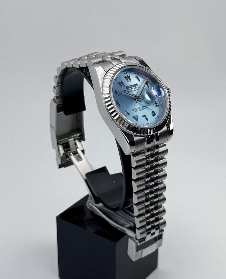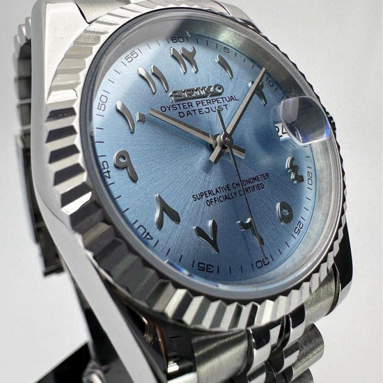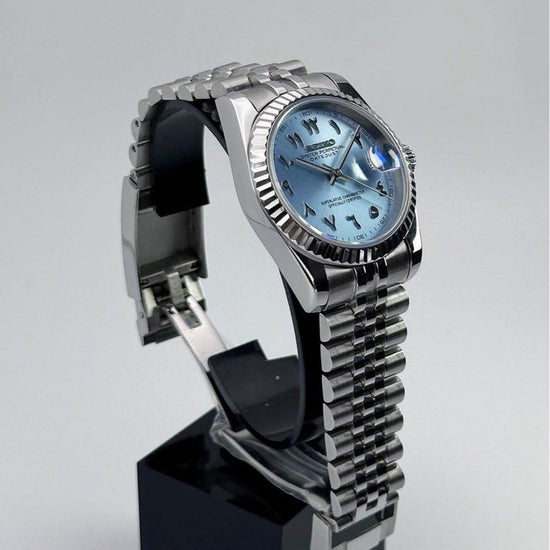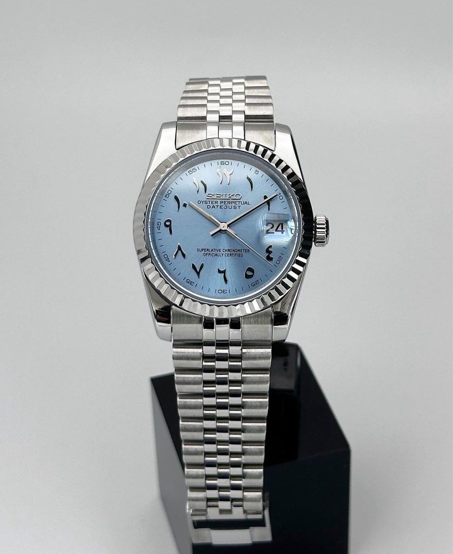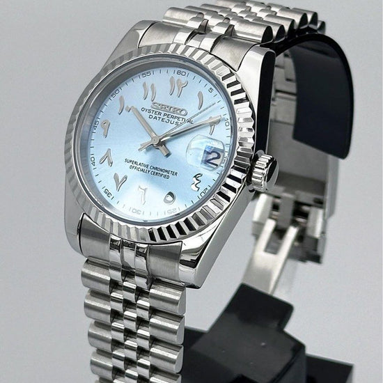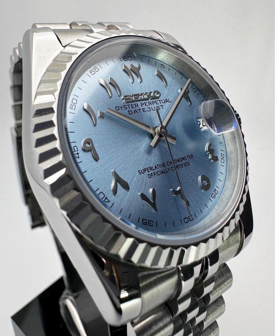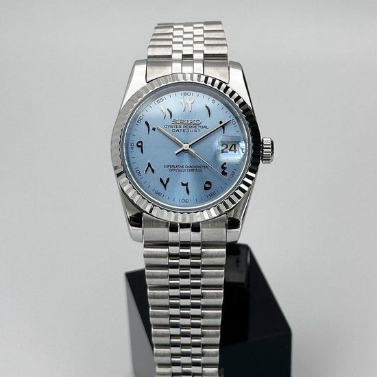 En NH35 mod er et modificeret ur, der bruger et autentisk Seiko-urværk. Dette kombineres med tredjepartsdele af høj kvalitet. Vores ure leveres i rustfrit stål med safirglas