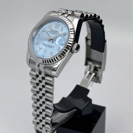 Automatisk urværk (SEIKO NH35) – Uret har et automatisk urværk, hvilket betyder, at det trækkes op ved bevægelse og ikke kræver batteri. SEIKO NH35 er kendt for sin høje præcision og driftssikkerhed.