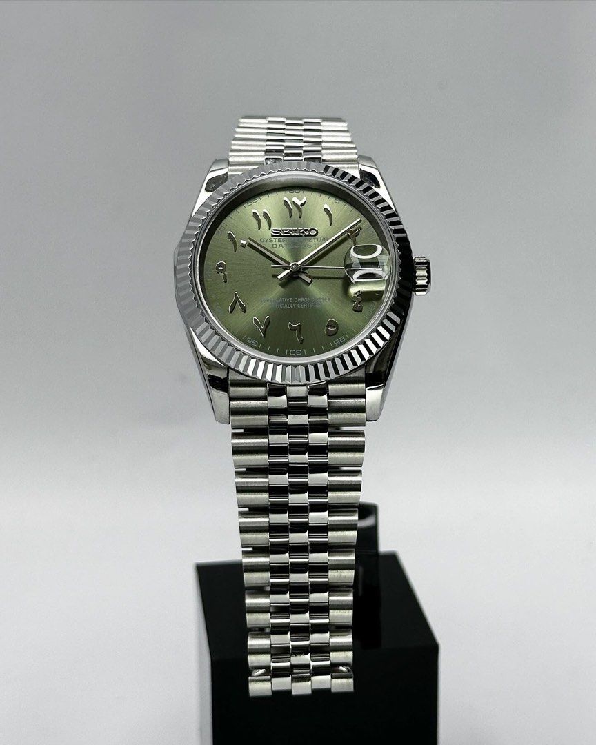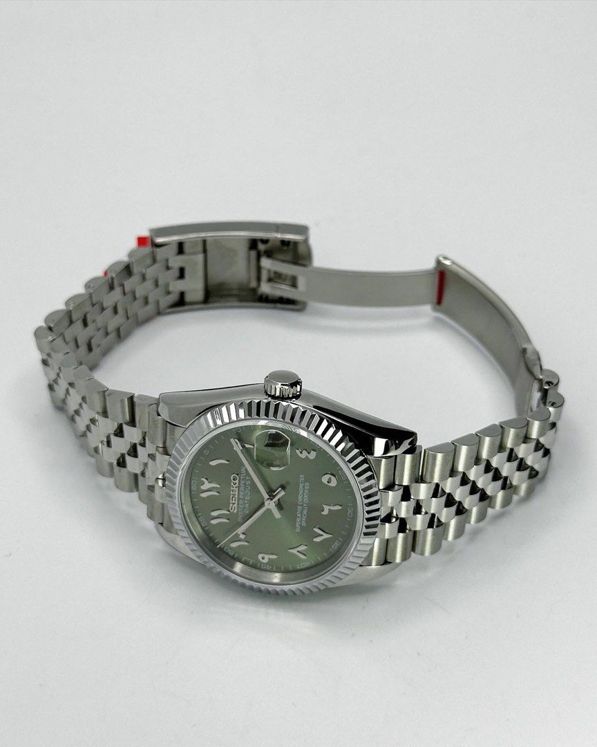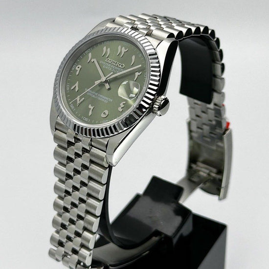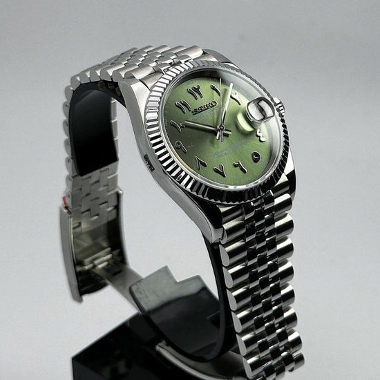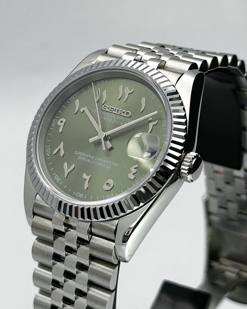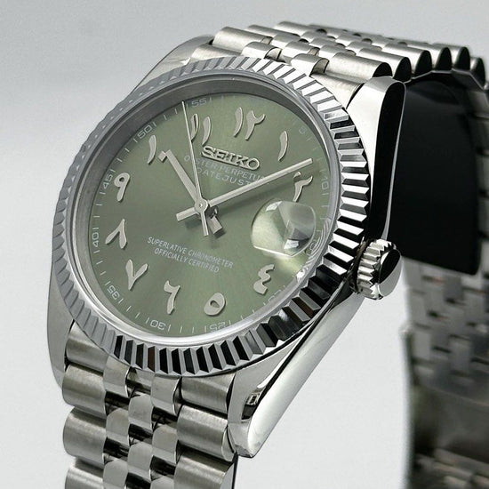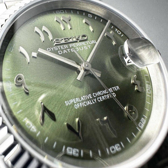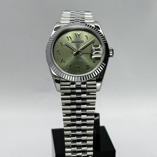 En NH35 mod er et modificeret ur, der bruger et autentisk Seiko-urværk. Dette kombineres med tredjepartsdele af høj kvalitet. Vores ure leveres i rustfrit stål med safirglas