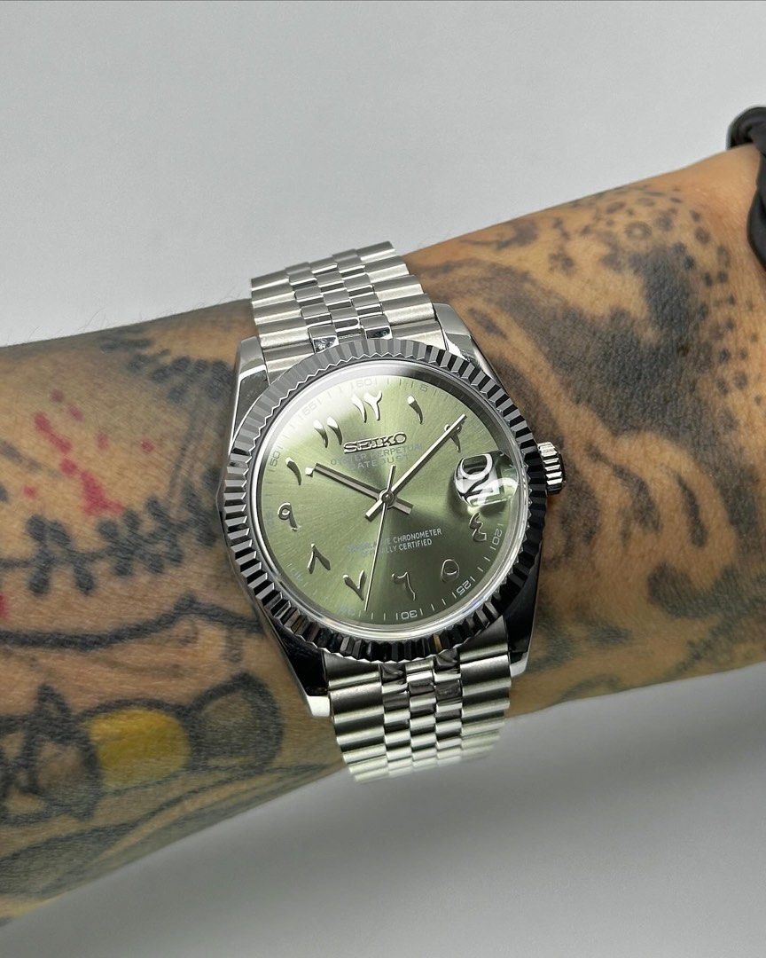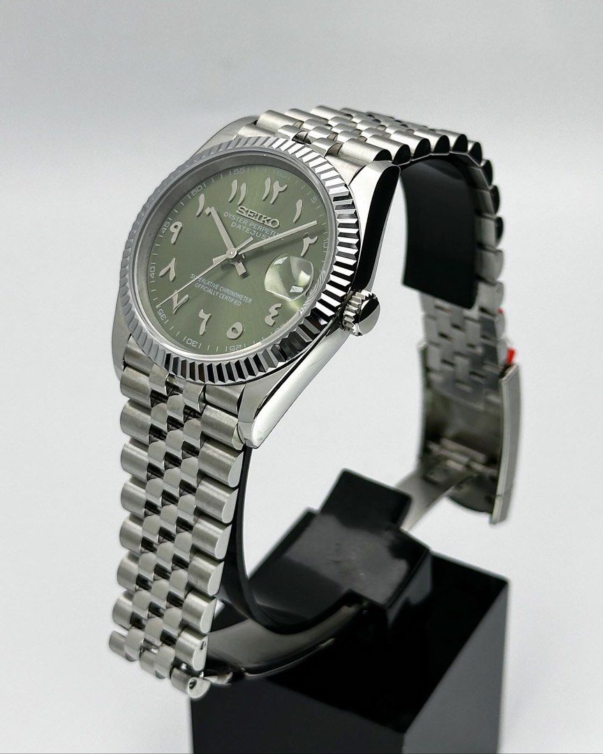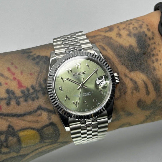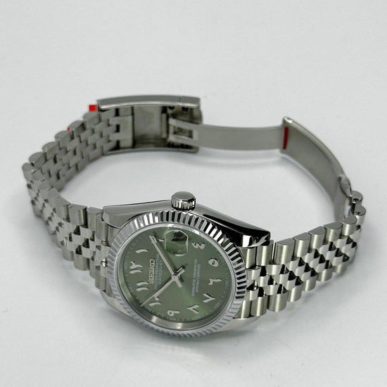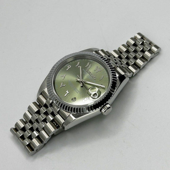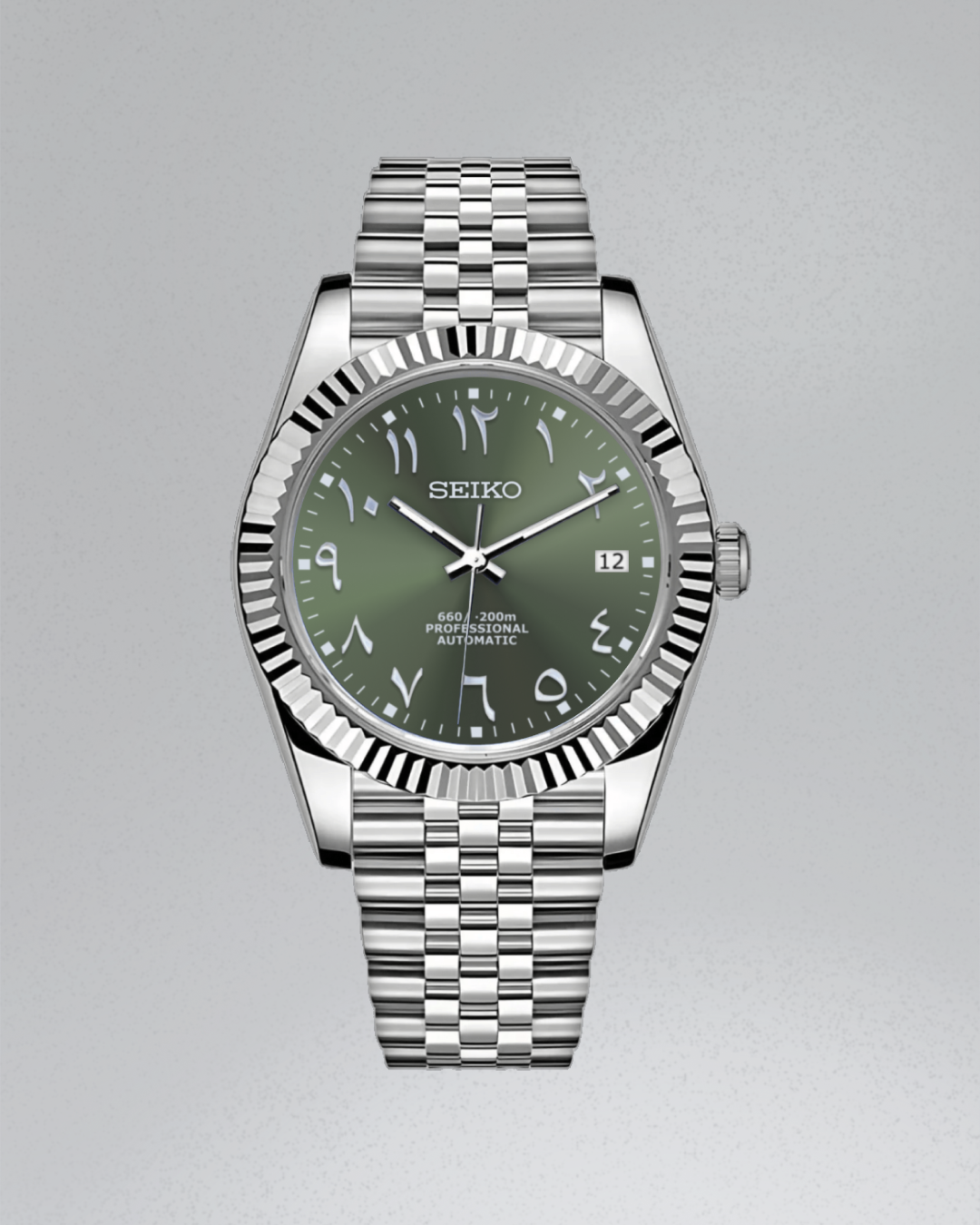 En NH35 mod er et modificeret ur, der bruger et autentisk Seiko-urværk. Dette kombineres med tredjepartsdele af høj kvalitet. Vores ure leveres i rustfrit stål med safirglas